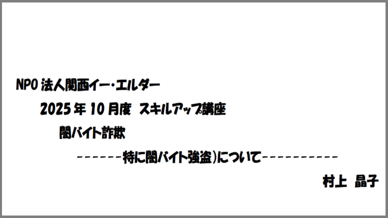 ◆25年度10月スキルアップ講座「闇バイト詐欺」講師:https://youtu.be/mCSTF2-OmME村上氏