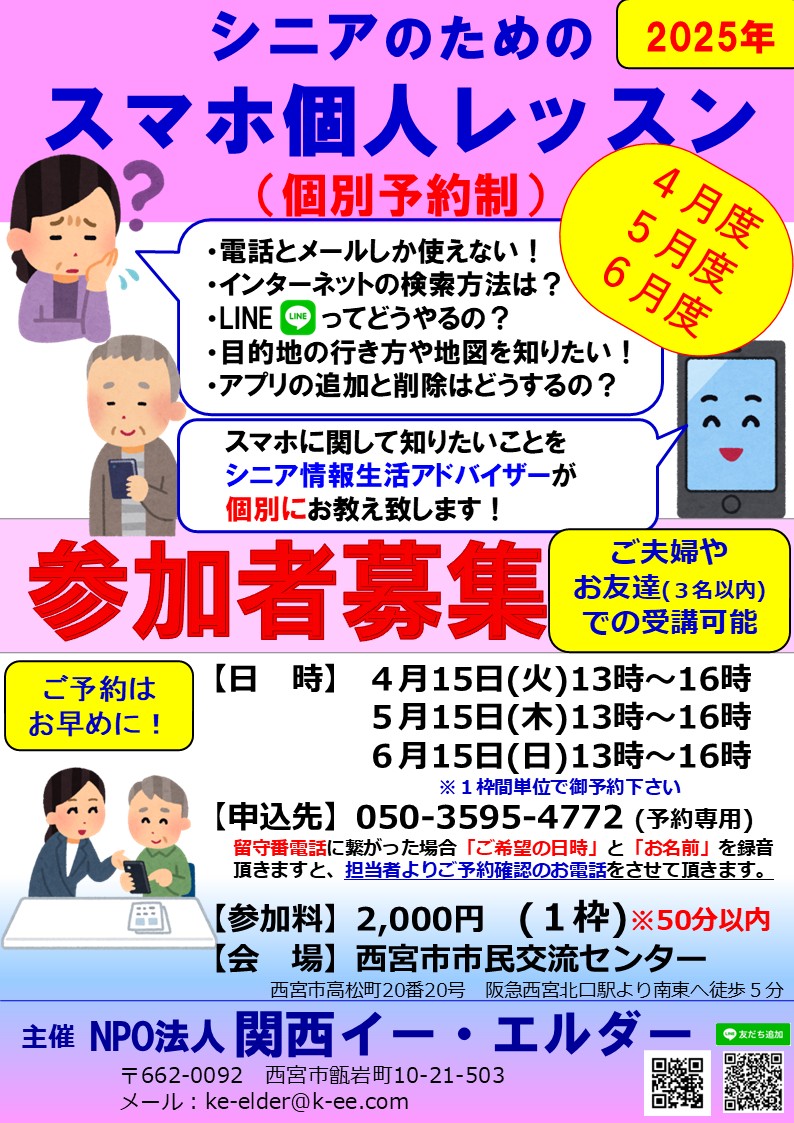 NPO法人関西イー・エルダーは20年以上にわたりシニアのIT活用を支援し、情報格差解消等の社会貢献活動に取り組んでいます。